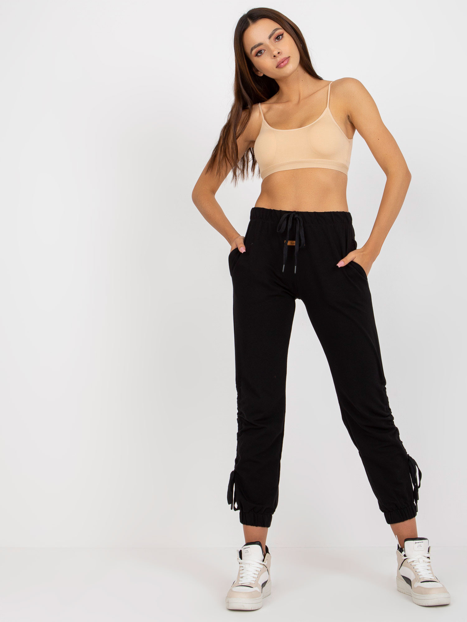 zloženie látky: 90% bavlna, 10% elastan spôsob prania: pranie v práčke pri 30 °C Modelka má na sebe veľkosť S. Rozmery modelky: výška 175 cm, prsia 84 cm, pás 61 cm, boky 91 cm. Rozmery nohavíc vo veľkosti S merané na plocho: šírka v páse - 34 cm, výška - 28 cm, celková dĺžka - 91 cm .