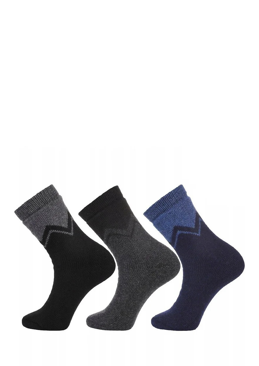 Pánske zimné ponožky - mäkká pletenina - geometrický vzor - froté na vnútornej strane - ploché, pohodlné švy Zloženie: 35 % vlna, 40 % polyester, 23 % akryl, 2 % elastan