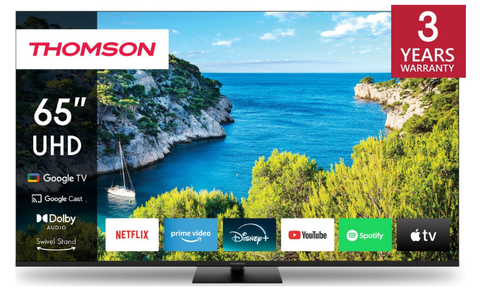 Vychutnajte si filmovú kvalitu obrazu s Thomson TV Google TV zjednodušuje váš zážitok z obsahu tým, že ho organizuje z vašich aplikácií a predplatných. Môžete si vytvoriť viacero používateľských profilov a vychutnať si personalizované odporúčania. Objavte obrovskú knižnicu obsahu vrátane viac ako 400 000 filmov a televíznych relácií. Využívajte inteligentné funkcie, ako je hlasové ovládanie pomocou služby Google Assistant alebo Google Cast, ktoré vám umožňujú prenášať obsah z kompatibilných zariadení na obrazovku vášho televízora. Ponorte sa do krištáľovo čistej kvality obrazu 4K UHD, ktorá vám umožní vidieť každý detail s rozlíšením štyrikrát vyšším ako Full HD. Technológia HDR10 obohacuje každú scénu o hlboký kontrast, vyvážený jas a presnú reprodukciu farieb, čím vytvára obraz, ktorý sa podobá realite. Ergonomické diaľkové ovládanie s jemným podsvietením umožňuje pohodlné používanie aj pri slabom osvetlení. Vstavaný Google Assistant umožňuje intuitívne ovládanie televízora hlasom. Vyhľadávajte svoje obľúbené filmy, získavajte odporúčania na základe vašej nálady alebo ovládajte kompatibilné zariadenia vo vašej inteligentnej domácnosti – to všetko pomocou hlasových povelov. Vychutnajte si väčšiu flexibilitu s otočným centrálnym stojanom, ktorý vám umožňuje nastaviť uhol pohľadu až o 30 stupňov. To znamená, že si môžete televízor dokonale prispôsobiť svojmu priestoru. Vstavaný trojitý tuner vám umožňuje prijímať signály cez satelit, pozemné alebo káblové vysielanie, takže si môžete vychutnať všetky dostupné kanály bez akéhokoľvek ďalšieho zariadenia. Kľúčové vlastnosti ZÁŽITOK SO 4K UHD S rozlíšením 3840 x 2160 pixelov ponúkajú televízory s rozlíšením 4K UHD kvalitu obrazu štyrikrát vyššiu ako Full HD, pre skutočne filmový zážitok. Či už sledujete svoj obľúbený film alebo zápas, jasný a detailný obraz vám umožní cítiť sa bližšie k akcii. DOLBY AUDIO Či už sledujete najnovšie trháky alebo svoje obľúbené relácie, technológia Dolby Audio obohatí vaše filmové večery o dynamický zvuk. Vychutnajte si automatické nastavenie hlasitosti, čistý zvuk a priestorový zvuk pre dokonalé nastavenie reproduktorov. INTELIGENTNÉ HLASOVÉ OVLÁDANIE Google Assistant vám umožňuje jednoducho ovládať televízor hlasom. Bezproblémovo integrujte televízor s inteligentnou domácnosťou, prehrávajte hudbu, vyhľadávajte filmy alebo otvárajte aplikácie – to všetko pomocou jednoduchých hlasových povelov.