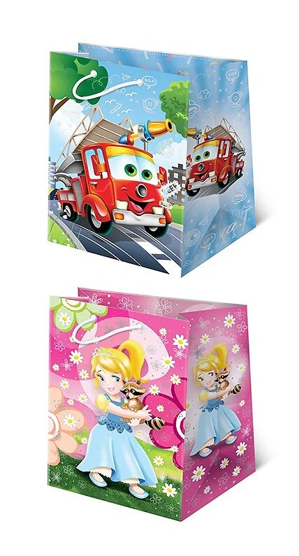 Veľké darčekové tašky - papier, laminovaný - veľká základňa - ideálne na hračky, plyšové medvedíky... - balené po 10 ks - balenie obsahuje 4 vzory