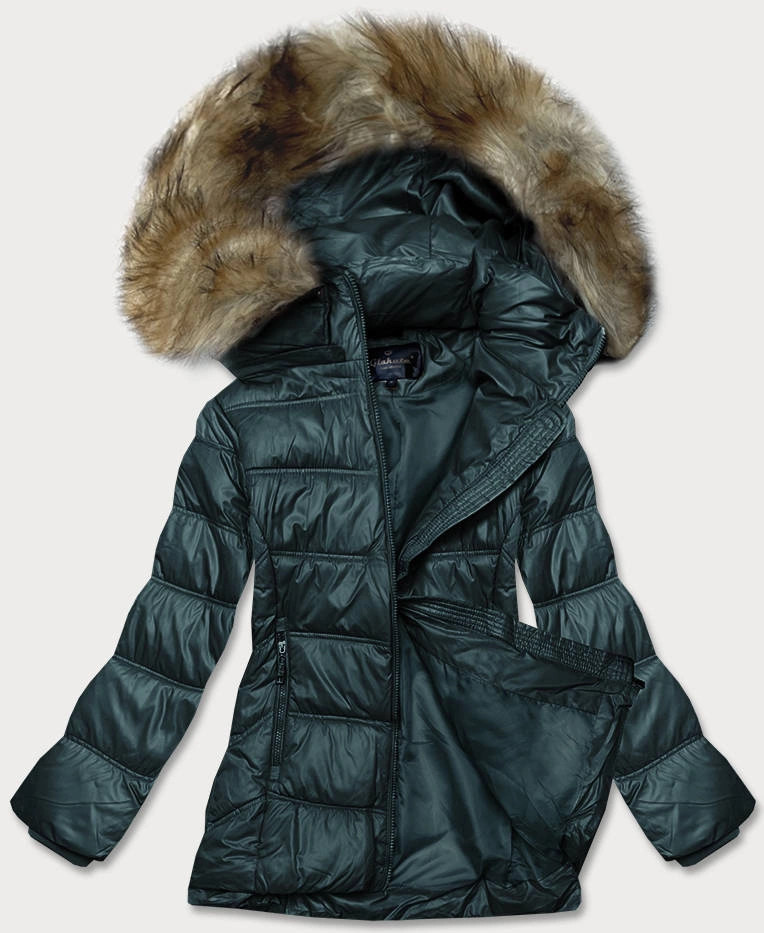 Tmavo zelená dámska prešívaná bunda vhodná pre sezónu (H-205) odstíny zelené L (40)