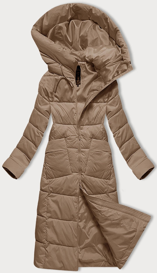 Tmavobéžová dámska prešívaná dlhá zimná bunda Libland (7767) odstíny béžové L (40)
