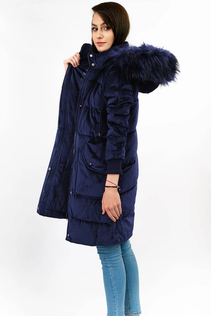 Domov Oblečenie a móda Dámske oblečenie Dámske bundy a kabáty Tmavomodrá dámska manšestrová zimná bunda s kapucňou (7764) odstíny modré XS (34)