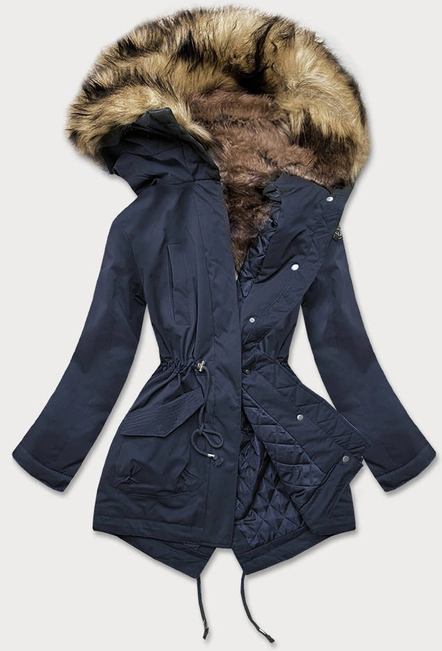 Pri výbere veľkosti venujte pozornosť nižšie uvedenej veľkostnej tabuľke. Veľkosti nezodpovedajú bežne nosenému oblečeniu. Bunda s kapucňou, ktorú možno odopnúť Bunda je zateplená syntetickou páperovou výplňou a vo vnútri je zateplená machovou kožušinou na chrbte. Model má štyri vrecká a zapína sa na zips a panel s patentkami. Bunda má kapucňu, ktorú možno odopnúť na ramenách ako golier. Model má aj vysoký stojačik so zapínaním na gombíky. Model má v páse sťahovacie šnúrky. Bunda je dlhá do polovice stehien. Materiál: 100 % polyester.