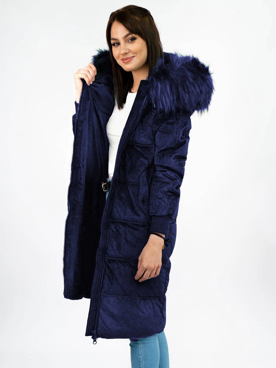 Pri výbere veľkosti venujte pozornosť nižšie uvedenej veľkostnej tabuľke. Veľkosti nezodpovedajú bežne nosenému oblečeniu. Veľmi teplá dlhšia zimná bunda s kapucňou Bunda je vyrobená z materiálu imitujúceho manšestr, je podšitá, zateplená syntetickou páperovou výplňou a má dve vrecká. Model má stojatý golier, ktorý prechádza do kapucne lemovanej kožušinou. Zatiaľ čo kapucňu nemožno odopnúť, kožušinu lemujúcu kapucňu možno rozopnúť. Na koncoch rukávov sú sťahovacie lemy. Zloženie: vrchná vrstva - 100 % polyester, podšívka - 100 % polyester, kožušina - 100 % akryl. Modelka na fotografii je vysoká 163 cm a nosí veľkosť S.