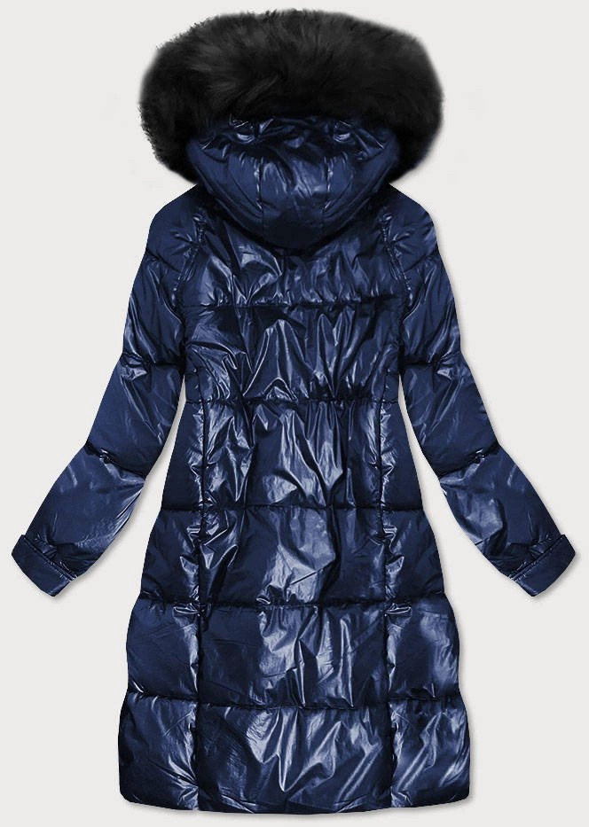 Domov Oblečenie a móda Dámske oblečenie Dámske bundy a kabáty Tmavomodrá dámska zimná metalická bunda s kapucňou (8295) odstíny modré M (38)