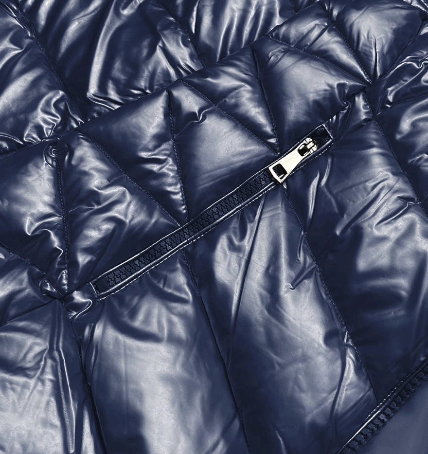 Tmavomodrá krátka dámska bunda s kožušinou (TY036-2) odstíny modré L (40)
