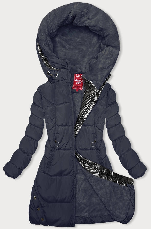 Domov Oblečenie a móda Dámske oblečenie Dámske bundy a kabáty Tmavomodrá zimná bunda s kapucňou (2M-231) odstíny modré XXL (44)