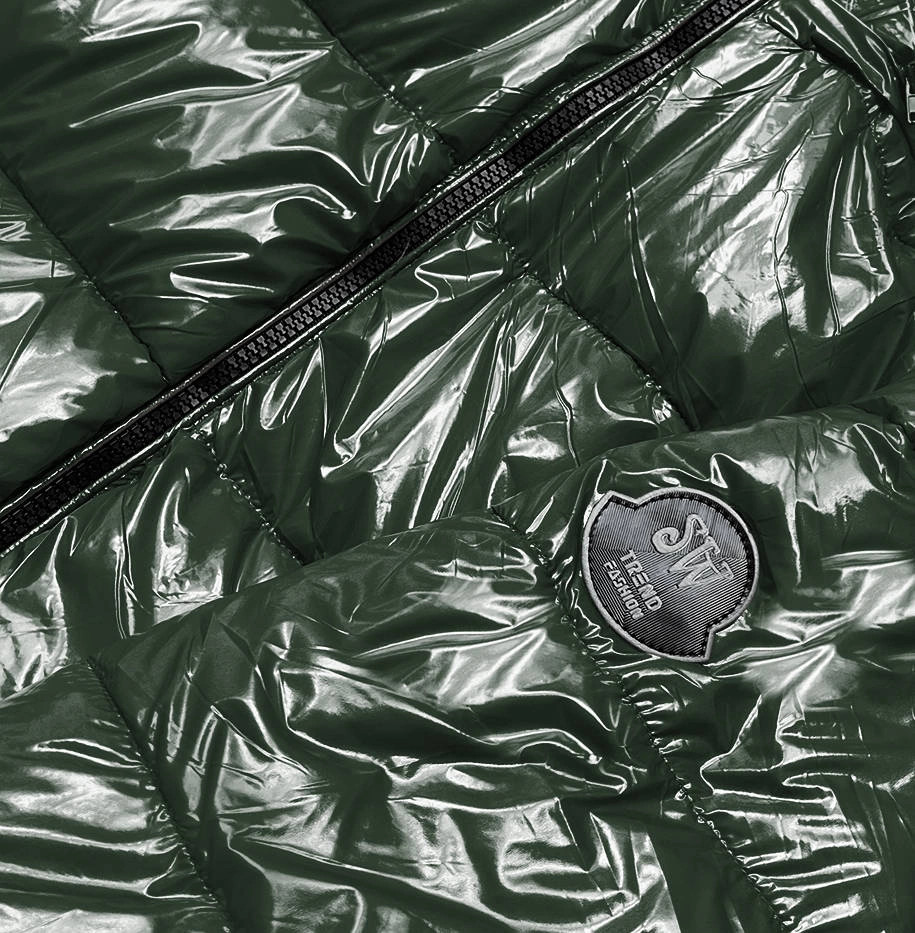 Domov Oblečenie a móda Dámske oblečenie Dámske bundy a kabáty Tmavozelená dámska lakovaná bunda (B8039-10) odstíny zelené L (40)