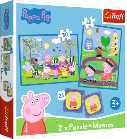 Trefl - Puzzle - Sada 3v1 Šťastné chvíle s prasiatkom Pepinou (2x puzzle + Pexeso) / 30+48 dielikov / 27.5 x 20.5 cm / vek 3+