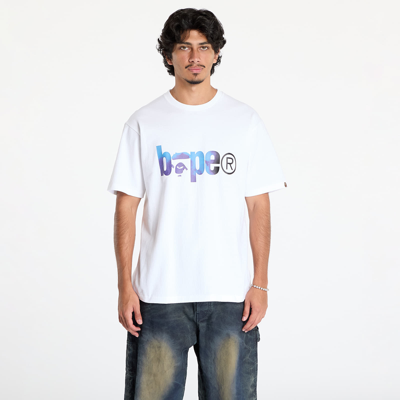 Tričko A BATHING APE Tie Dye Bape Logo Tee White/ Black XXL