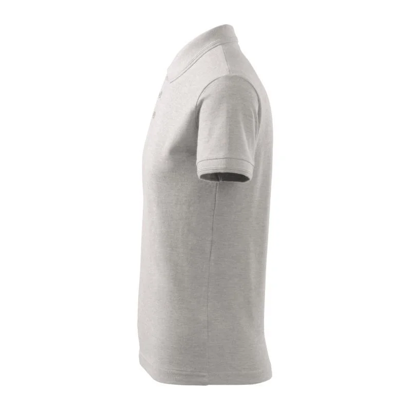 Vlastnosti: Pique, 65% bavlna, 35% polyester, strih s bočnými švami, golier a manžety s dvojitým ozdobným rebrovým úpletom 1:1, záhyby s 3 gombíkmi vo farbe látky, vnútorná časť lemovaná pruhom z rovnakej látky ako košele, ramenné švy spevnené páskou farba: šedá