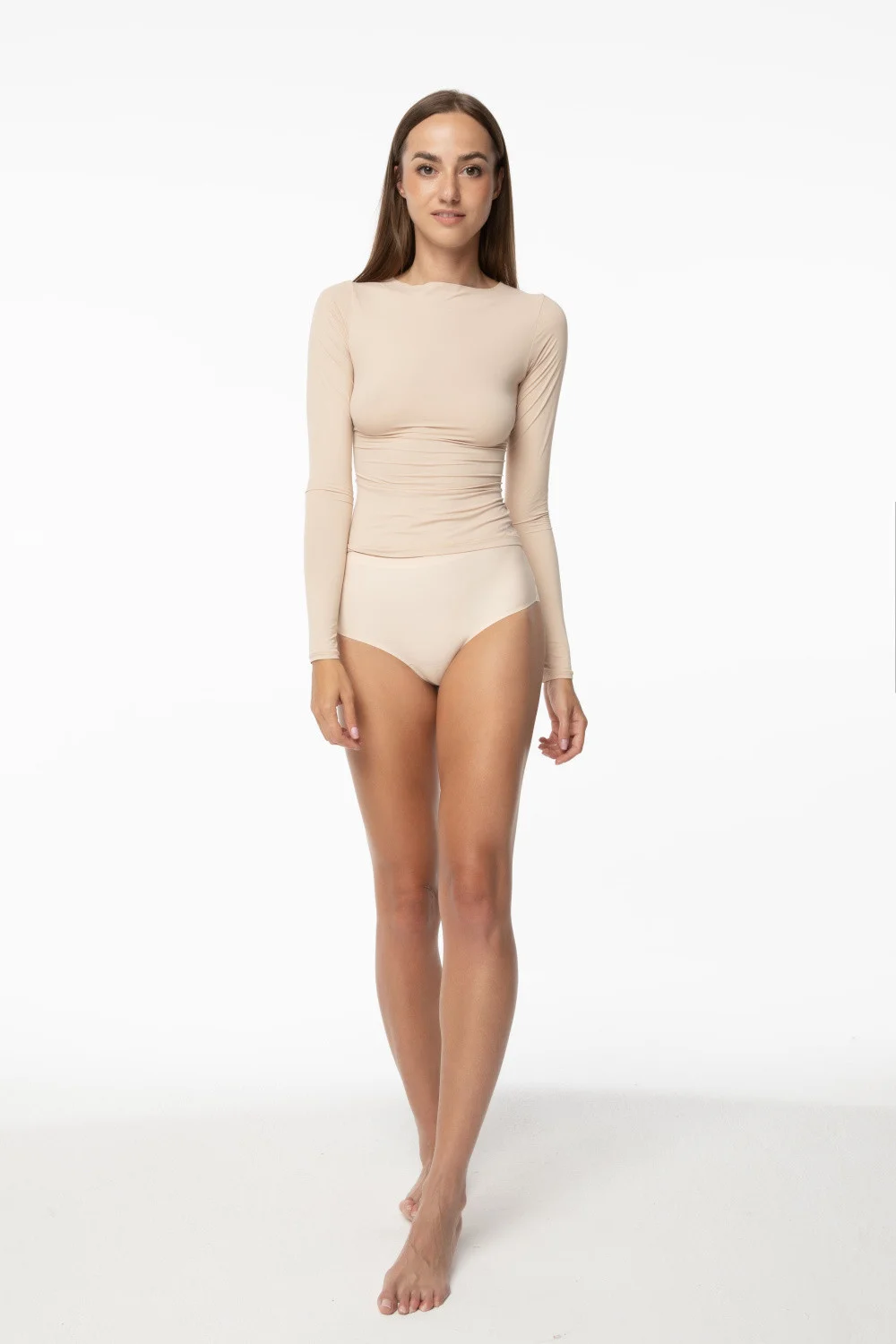 Hladká a elastická blúzka s dlhými rukávmi od značky SIMPLE LONGSLEEVE v teplej, prirodzenej béžovej farbe. Je vyrobená z tkaniny jemnej na dotyk, ktorá jemne obopína telo pre celodenné pohodlie a istotu. Skvele sa nosí samostatne alebo ako základná vrstva pod sako, sveter či vestu. Vďaka univerzálnemu strihu je ideálna na bežné aj formálnejšie príležitosti. Neutrálny béžový odtieň sa dokonale kombinuje s inými farbami a poskytuje nadčasový základ, ktorý zvýrazňuje krásu a umožňuje rôzne kombinácie. Béžová je ideálnou voľbou pre tých, ktorí hľadajú rovnováhu medzi jednoduchosťou a eleganciou, táto farba urobí každý vzhľad jedinečným. elastan 24 %Polyamid 76 % Veľkosť Obvod hrudníka L96-100 cmM90-94 cmS84-88 cmXL102-106 cm