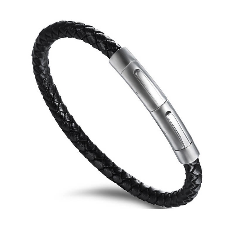 Troli Čierny prepletený náramok s matnou oceľovou sponou Leather