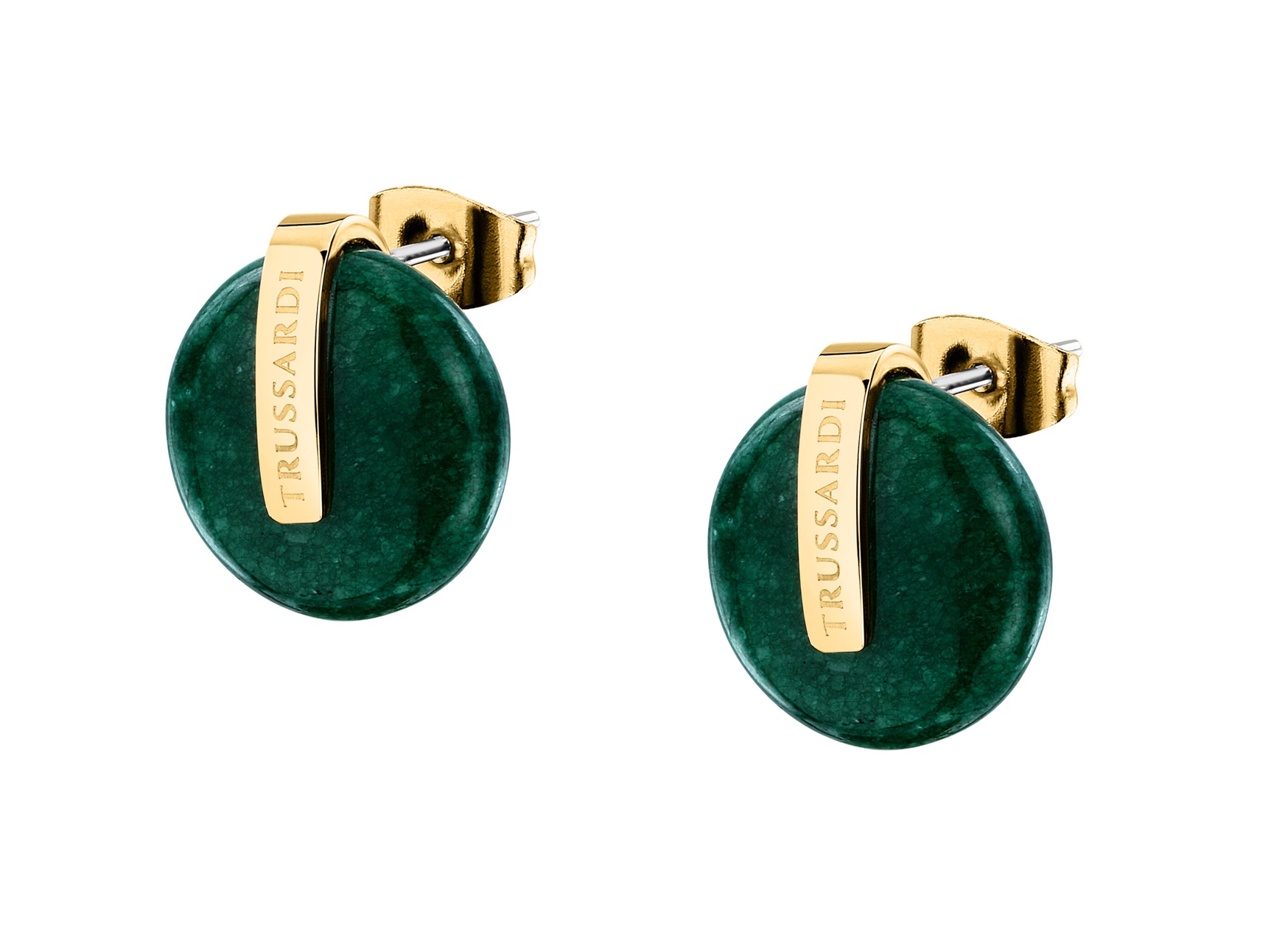 Trussardi Módne pozlátené náušnice s achátom T-Round TJAYF12