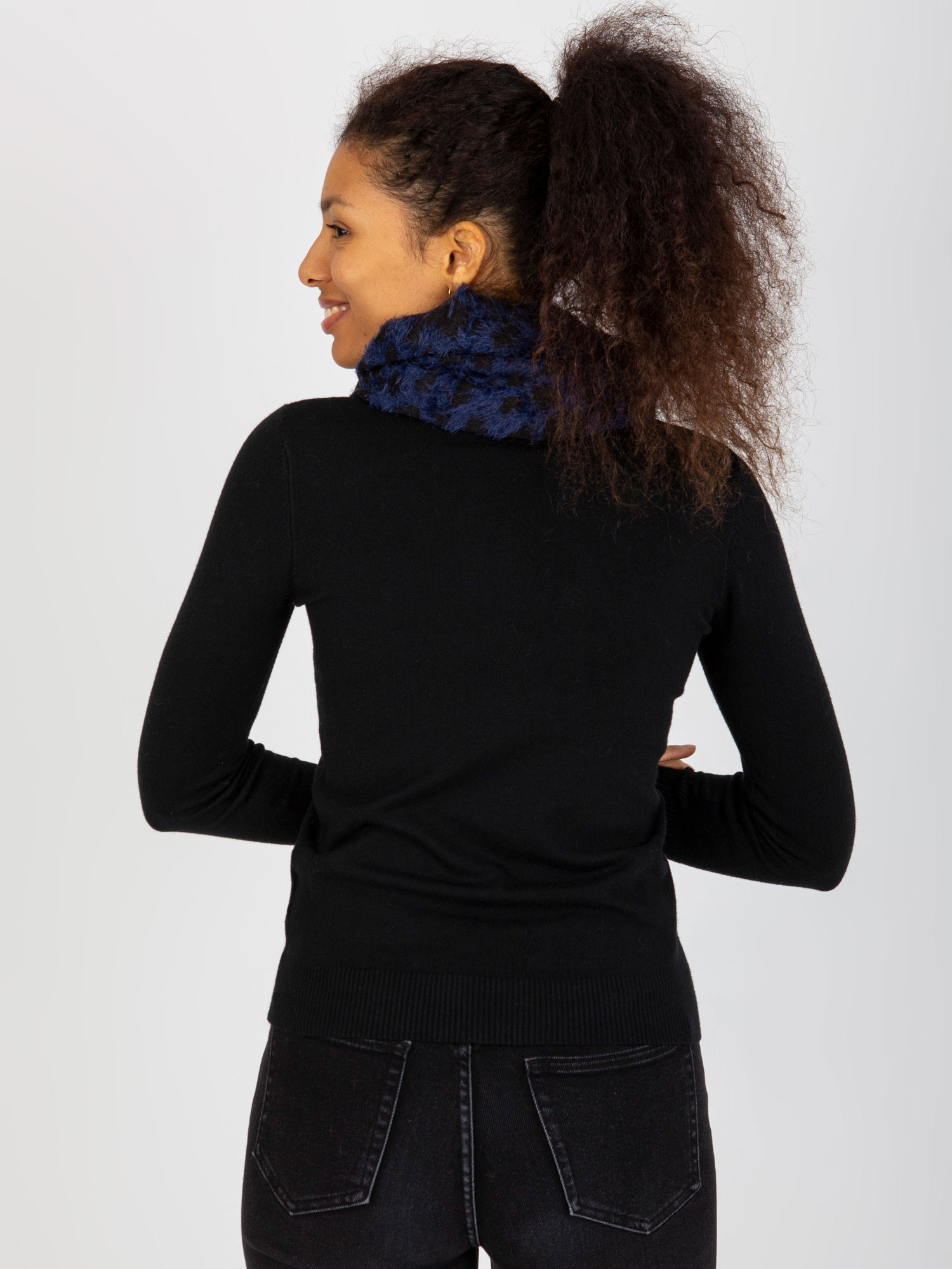 Tmavomodro-čierny zimný komín pre ženy . Kód produktu: AT-KM-ENEC-B63.33P dominantný dizajn: potlač rozmery: dĺžka - 128 cm, šírka - 30 cm