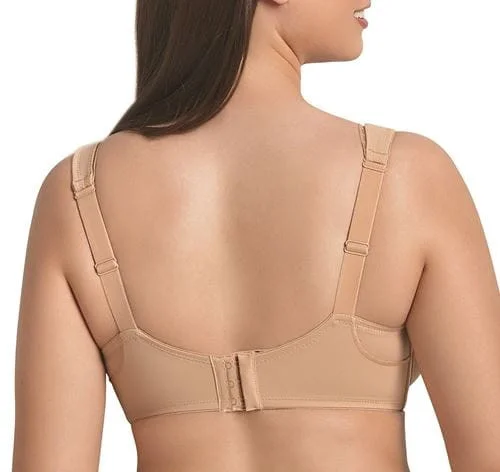 Mäkká podprsenka s kosticami Anita s bezšvovým tvarovaním. Je vyrobený z exkluzívnej, hodvábne jemnej tkaniny SuperMicro v kombinácii so stabilným tylom. Dodáva prsiam prirodzený tvar, formuje ich do okrúhleho tvaru a poskytuje maximálnu podporu. Výrobok bol testovaný na prítomnosť škodlivých látok a bol mu udelený medzinárodný certifikát Oeko-Tex - TEXTÍLIE, KTORÝM SA DÁ DÔVEROVAŤ Materiál: - Harmonická kombinácia dvoch látok: vzdušného, ale pevného tylu a tvarujúcej látky SuperMicro. - Exkluzívna, hodvábne jemná tkanina "SuperMicro" - poskytuje pocit druhej kože, - má priedušné a vlhkosť odvádzajúce vlastnosti - Pás pod prsiami je anatomicky tvarovaný, takže lepšie prilieha k telu a prsia sú optimálne podopreté. - extra flísom podšitý spodný pruh pre ešte väčšie pohodlie.   Šálky: Bezšvové, nepriehľadné, tepelne tvarované so zníženou elasticitou, poskytujúce vynikajúcu podporu poprsia. - pri väčších rozmeroch sú bočné švy dodatočne vystužené špeciálnymi plastovými podperami. - Podprsenka sa anatomicky prispôsobí telu, aby dokonale sedela a umožňovala voľný pohyb. - Elastická priehľadná stuha prechádzajúca od výstrihu k ramienkam sa dokonale prispôsobí prsiam. - Stuha dodáva minimalistickému dizajnu podprsenky ľahkosť. - Ďalším zaujímavým akcentom je jemné strieborné logo Rosa Faia na obvode podprsenky.   Rámcová štruktúra: - nastaviteľný, stabilný, zosilnený - so zníženou flexibilitou - 4 rôzne šírky v závislosti od veľkosti - pre lepšiu oporu smerujú vzadu mierne dovnútra - regulátory neobsahujú nikel Zadná časť: - zosilnené, so špeciálnymi tlakovými zónami - Špeciálne navrhnuté priehľadné a nepriehľadné časti vyrobené z materiálov s rôznou pevnosťou a rozťažnosťou sa dokonale prispôsobujú anatómii tela a plnia svoju podpornú funkciu. - širšie pre väčšie veľkosti - počet háčikov sa zvyšuje s rastúcou veľkosťou