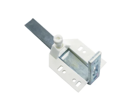 uhlový nosník (2 ks) s plastovým mostíkom a 90° kovovým uholníkom na montáž záclonových koľajničiek na stenu.