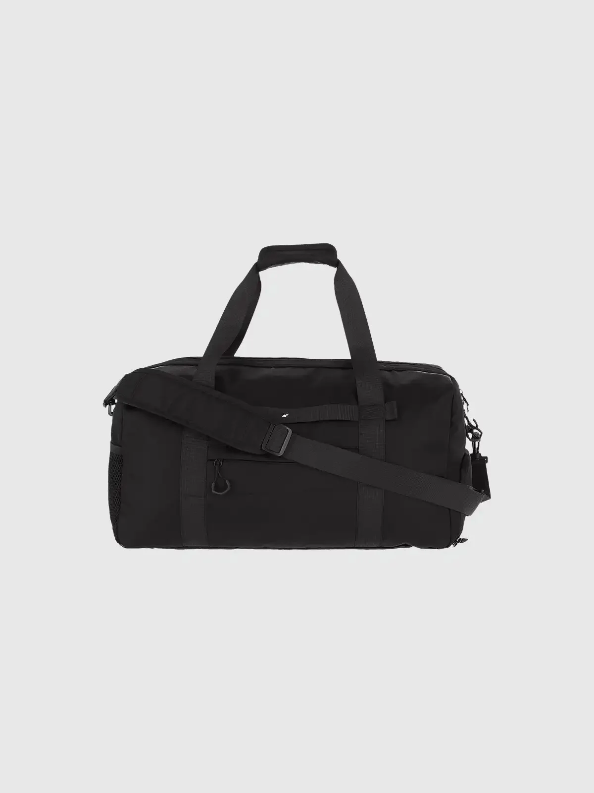 Unisex športová taška je praktický doplnok, ktorý doplní každý športový vzhľad a spája štýlový dizajn s funkčným využitím. Skvele sa hodí na uloženie náhradného oblečenia a všetkých nevyhnutností na tréning a po ňom, ako sú proteínové tyčinky alebo fľaše s vodou. Početné vrecká s rôznou kapacitou umožňujú pohodlne usporiadať obsah tašky. Dodatočné vrecko na obuv umožňuje pohodlne oddeliť náhradnú obuv alebo mokré oblečenie od ostatného obsahu tašky. Nastaviteľný ramenný popruh alebo rukoväť na prenášanie poskytujú pohodlie počas prepravy. Športová taška je vyrobená zo syntetického materiálu s hladkým povrchom, ktorý zaručuje odolnosť a ľahko sa udržiava. Hydrofóbna impregnačná vrstva pokrýva vonkajšiu vrstvu materiálu a zabraňuje absorpcii vody. Táto vrstva spôsobuje, že vlhkosť kondenzuje na povrchu tkaniny a potom voľne odteká. Športová taška cez rameno má nastaviteľný, odnímateľný popruh s prídavnou podložkou na rameno. Športová taška má dvojité držadlo na nosenie v ruke so zapínaním na suchý zips. Hlavný priestor má dvojcestné zapínanie na zips. Na prednej strane je vrecko na zips a otvorené sieťované vrecko. 3 vrecká na bokoch: 2 otvorené sieťované vrecká a 1 vetrané vrecko so zapínaním na obuv. 3 ďalšie vnútorné otvorené vrecká na drobnosti. Nevystužené laminované dno. objem: 30 l rozmery: 26x50x23cm