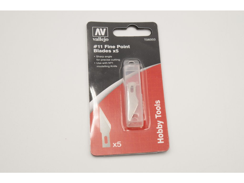 Vallejo T06003 je sada piatich náhradných čepelí typu #11 s jemným hrotom, určených na precízne rezanie a ďalšie jemné modelárske práce. Tieto čepele sú určené pre modelárske nože č. 1, čo je štandardný typ pre detailnú prácu, a vďaka jemnému hrotu sú ideálne na úlohy vyžadujúce vysokú presnosť.