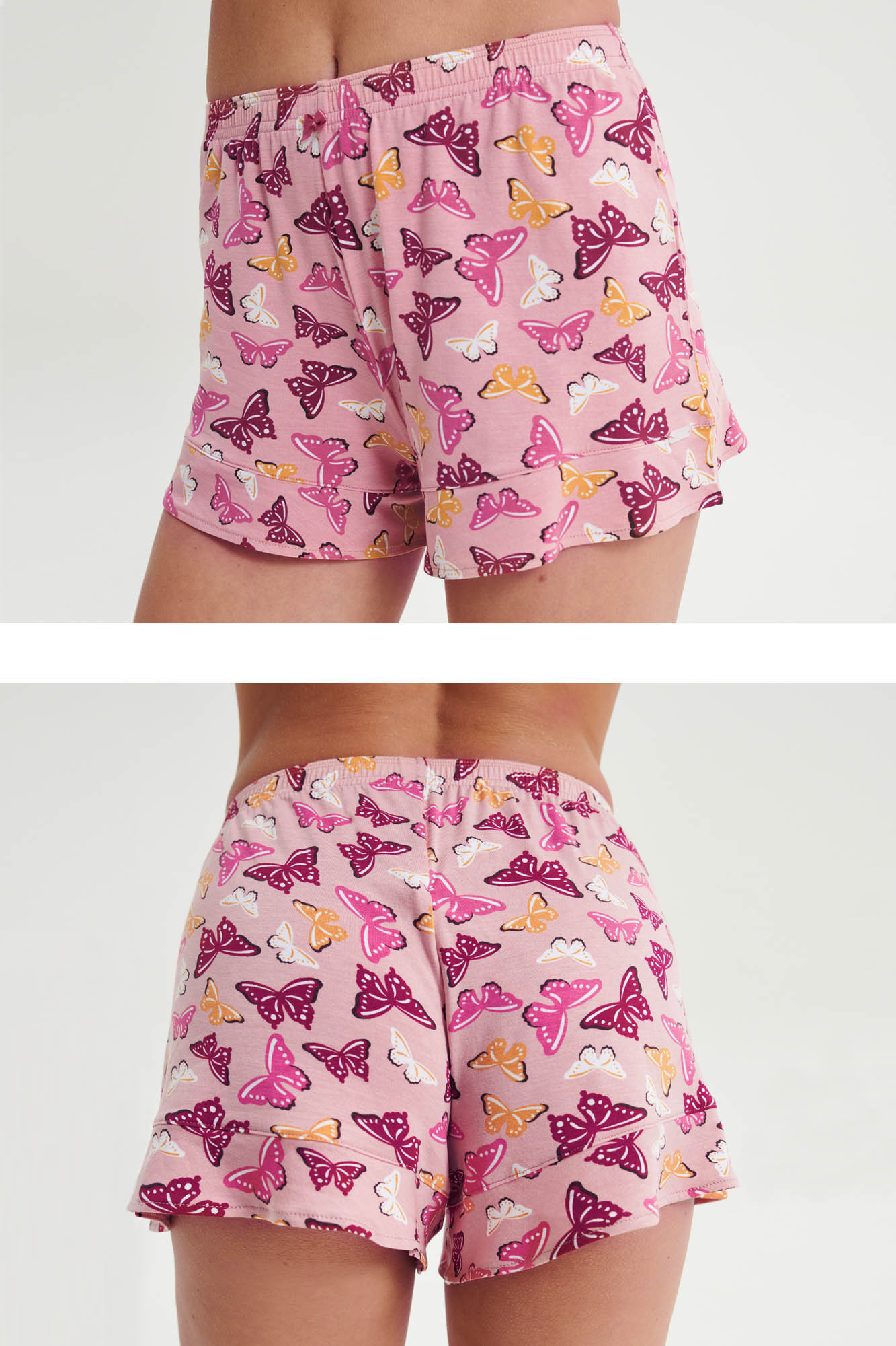 LENZING Tencel Modal Micro 93% + Elastan 7%. Modelka: výška 175 cm, veľkosť: Small.Dámske lícne nohavice s elastickým pásom a bočnými rázporkami. Vyrobené z tkaniny príjemnej na dotyk, ktorá zaistí pohodlie a eleganciu pre vaše chvíle doma. Podprsenka s krátkym rukávom.