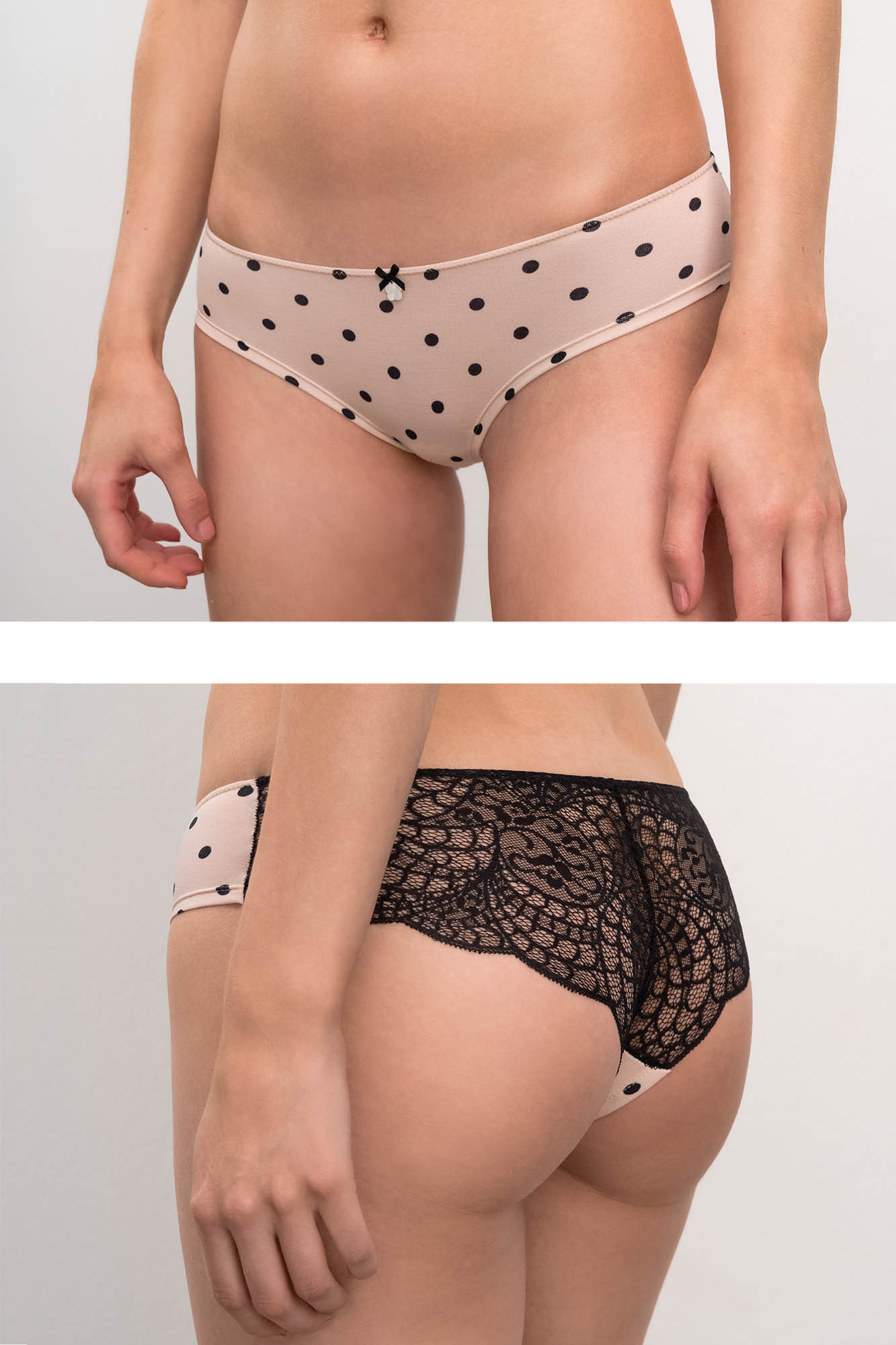 Dámske nohavičky s potlačou bodiek as pohodlnou gumou v páse pre pocit výnimočnosti. Dámske nohavičky zdobí rafinovaná čipka na zadnej časti a sú vyrobené z vysoko kvalitného Micro-modalu s prímesou Elastanu. Prírodné Micro-modal poskytuje výnimočnú mäkkosť a pohodlie, je priedušný, pri praní sa nezráža, dobre absorbuje pot a rýchlo schne, zatiaľ čo Elastan dodáva odevu potrebnú pružnosť. farba a vzor: rose smoke (ružová), potlač materiál Micro-modal 93%, Elastane 7% strih: cheeky pohodlná guma v páse materiál Micro-modal 93%, Elastane 7% sezóna: jar-leto 2022 modelka: výška 175 cm, veľkosť košieľky: Small (S)