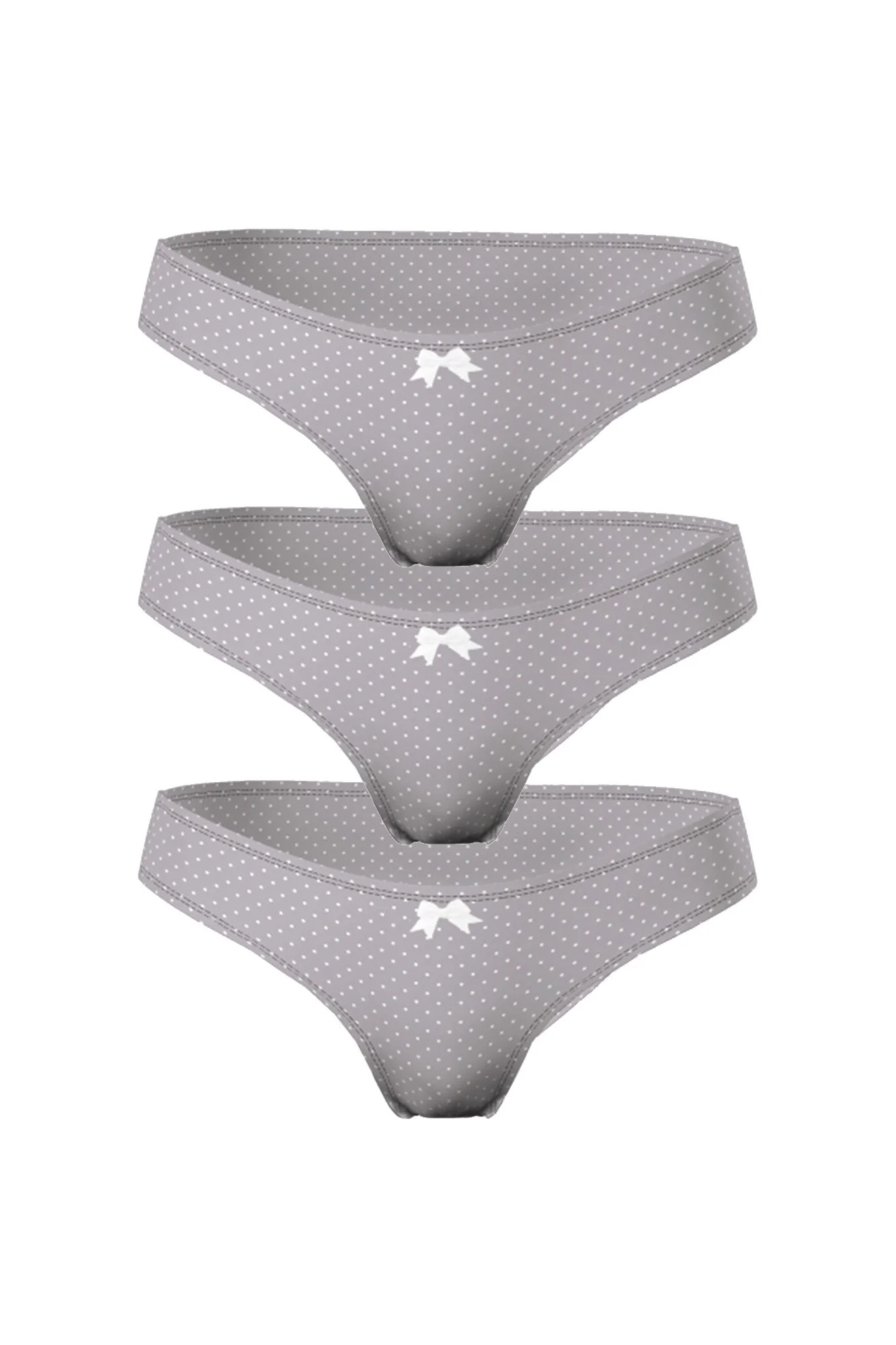Dámske pohodlné cheeky strihu vyrobené z kvalitnej bavlny, ktorá ideálne prilieha k telu a pri nosení je zárukou skvelého pocitu a sebavedomie. Decentná čipka a mašlička podčiarkne vašu ženskú povahu. - Set: 3 ks jednotnej veľkosti - Materiál 92% bavlna (jersey), 8% elastane