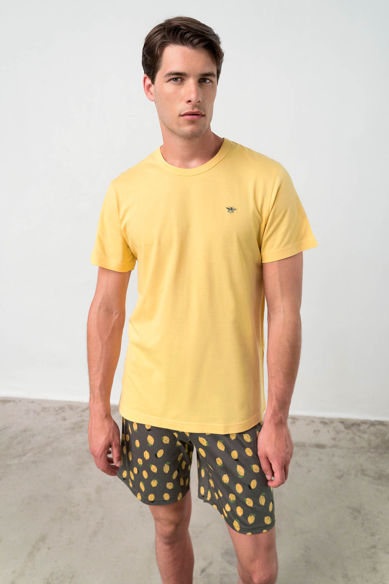 farba a vzor: yellow pollen (žltá), citrón materiál: SJ Cotton 50% prírodná bavlna, 50% modal horná časť: jednofarebná, krátky rukáv, okrúhly výstrih nohavice: šortky, citrónová potlač model: výška 185 cm, veľkosť pyžamá Medium (M) Pohodlné dvojdielne pánske pyžamo pre kvalitný spánok a voľný čas je vyrobené z vysoko kvalitnej, genetický nemodifikovanej egejskej bavlny, ktorá poskytuje vysoké pohodlie, príjemný pocit na dotyk, priedušnosť, pružnosť a odolnosť. Modalové vlákno je nesmierne poddajné a splývavé a zachováva svoju mäkkosť, krásnu farbu a tvar aj po mnohých praniach.