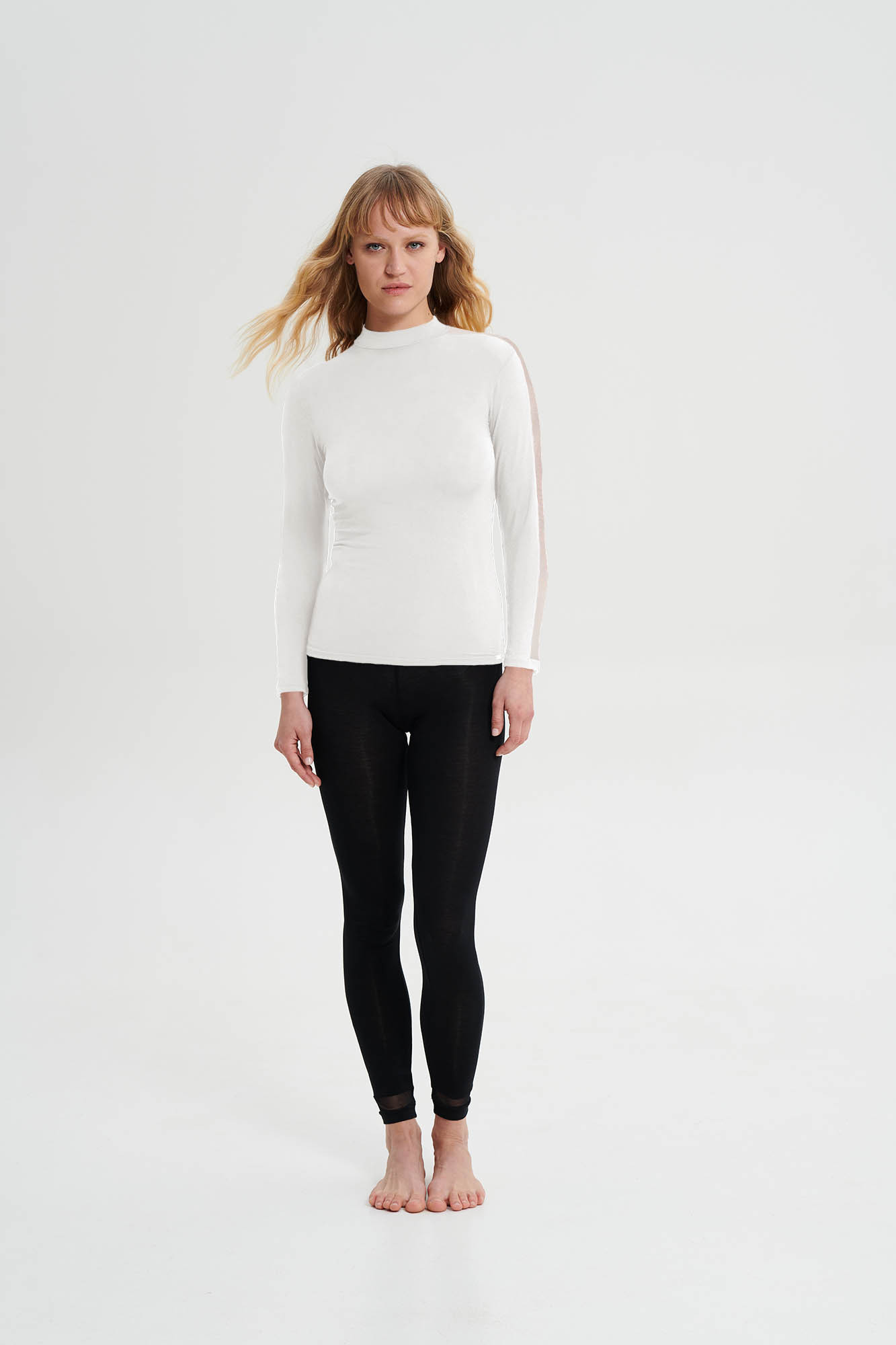 LENZING Tencel Modal Micro 93% + Elastan 7%.Dĺžka: 60 cm.Modelka: výška 175 cm, veľkosť: Small.Dámska košieľka s dlhými rukávmi a sieťovanými detailmi. Klasická hladká voľba, ktorá vám poskytne pohodlie a luxus.