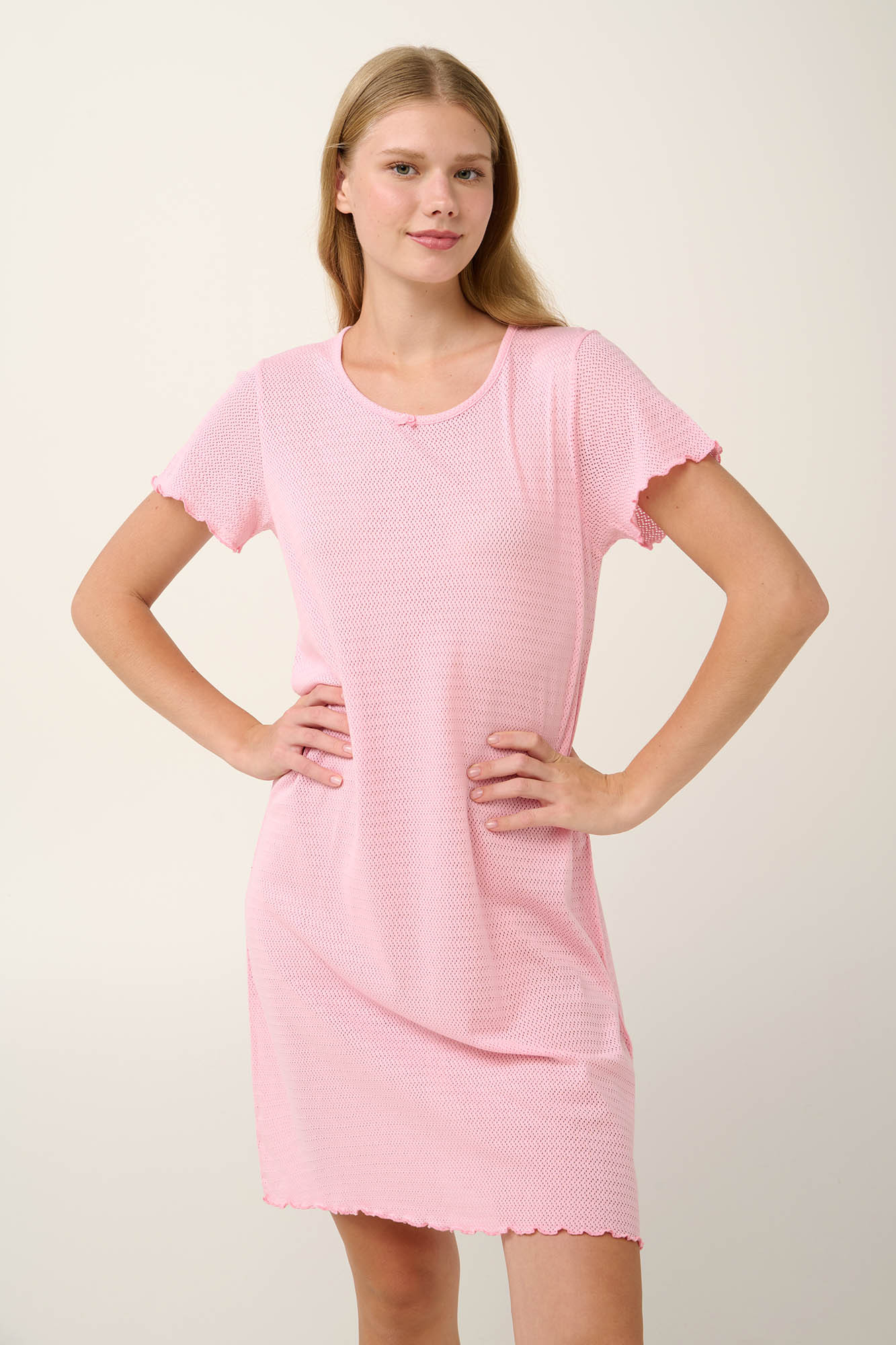 50% bavlnený žakár + 50% modalDĺžka: 95 cm.Model: výška 175 cm, veľkosť: Small.Vychutnajte si pohodlie bez námahy s touto ľahkou letnou nočnou košeľou. Má jednoduchý, elegantný dizajn s krátkymi rukávmi a pravidelný strih pre celonočné pohodlie. Je vyrobená z luxusnej zmesi bavlny a modalu, vďaka čomu je neuveriteľne jemná na pokožke a zároveň zostáva priedušná a chladivá. Táto nočná košeľa je ideálna na teplé noci a je nevyhnutnou súčasťou pre pokojný spánok a pohodové rána.