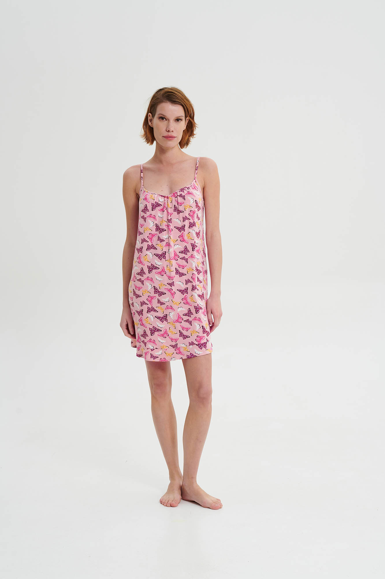 LENZING Tencel Modal Micro 93% + Elastan 7%. Dĺžka: 80cm. Modelka: výška 175 cm, veľkosť: Small.Modelka má hlboký okrúhly výstrih a špagetové ramienka v pohodlnom strihu. Vyrobené z tkaniny príjemnej na dotyk, ktorá zaistí pohodlie a eleganciu pre vaše chvíle doma.