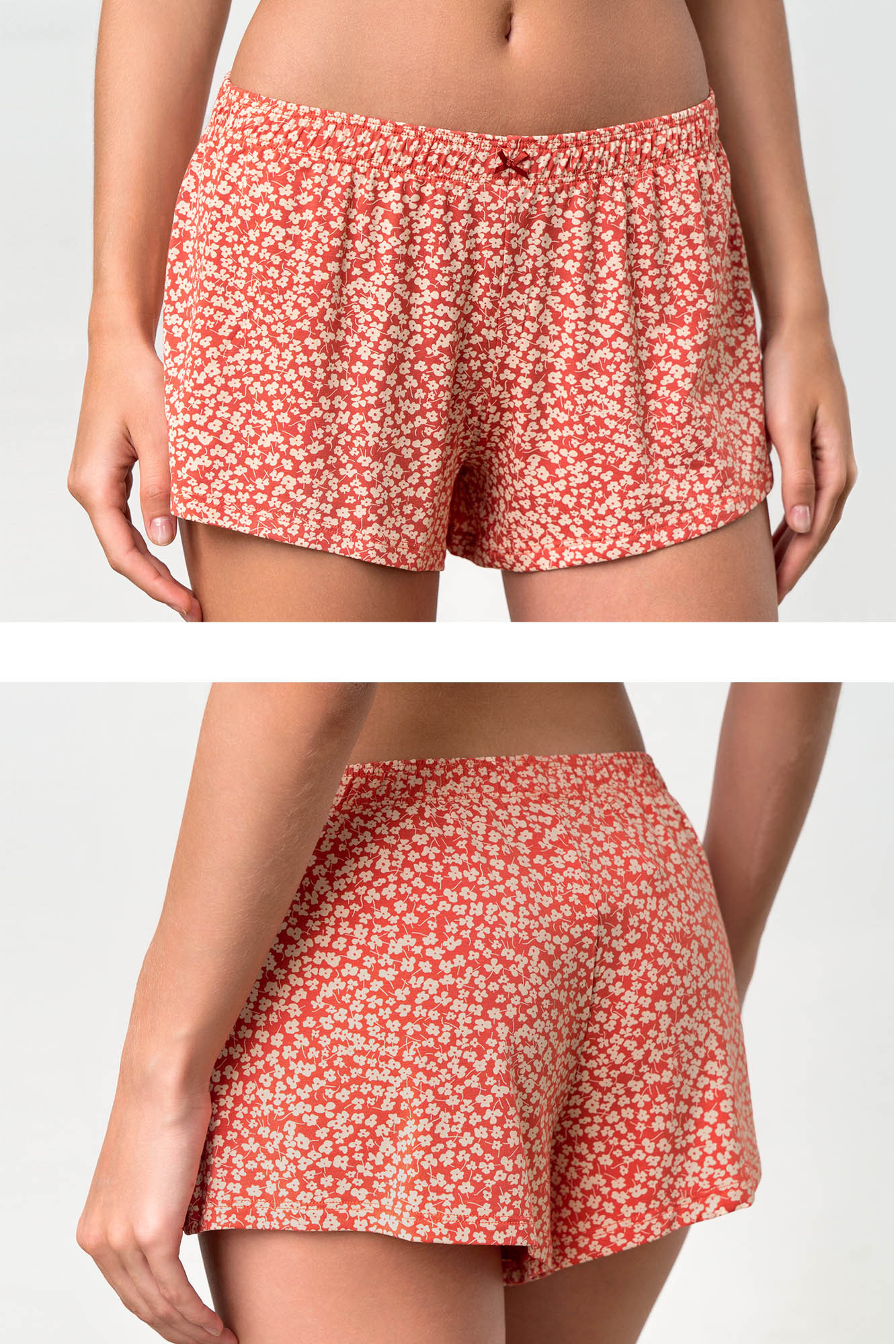 farba a vzor: red chili (červená), kvetinový materiál: S. Jersey, LENZING Tencel Modal Micro 93%, Elastan 7% strih: cheeky výnimočne dlhá životnosť modelka: výška 175 cm, veľkosť: Small (S) Pohodlné dámske kraťasy vyrobené z vysoko kvalitného Micro-Modalu s prímesou elastanu. Prírodný Micro-Modal (Tencel) poskytuje výnimočnú mäkkosť a pohodlie, je veľmi príjemný na dotyk, priedušný, pri praní sa nezráža, dobre absorbuje pot a rýchlo schne, zatiaľ čo elastan dodáva odevu potrebnú pružnosť.