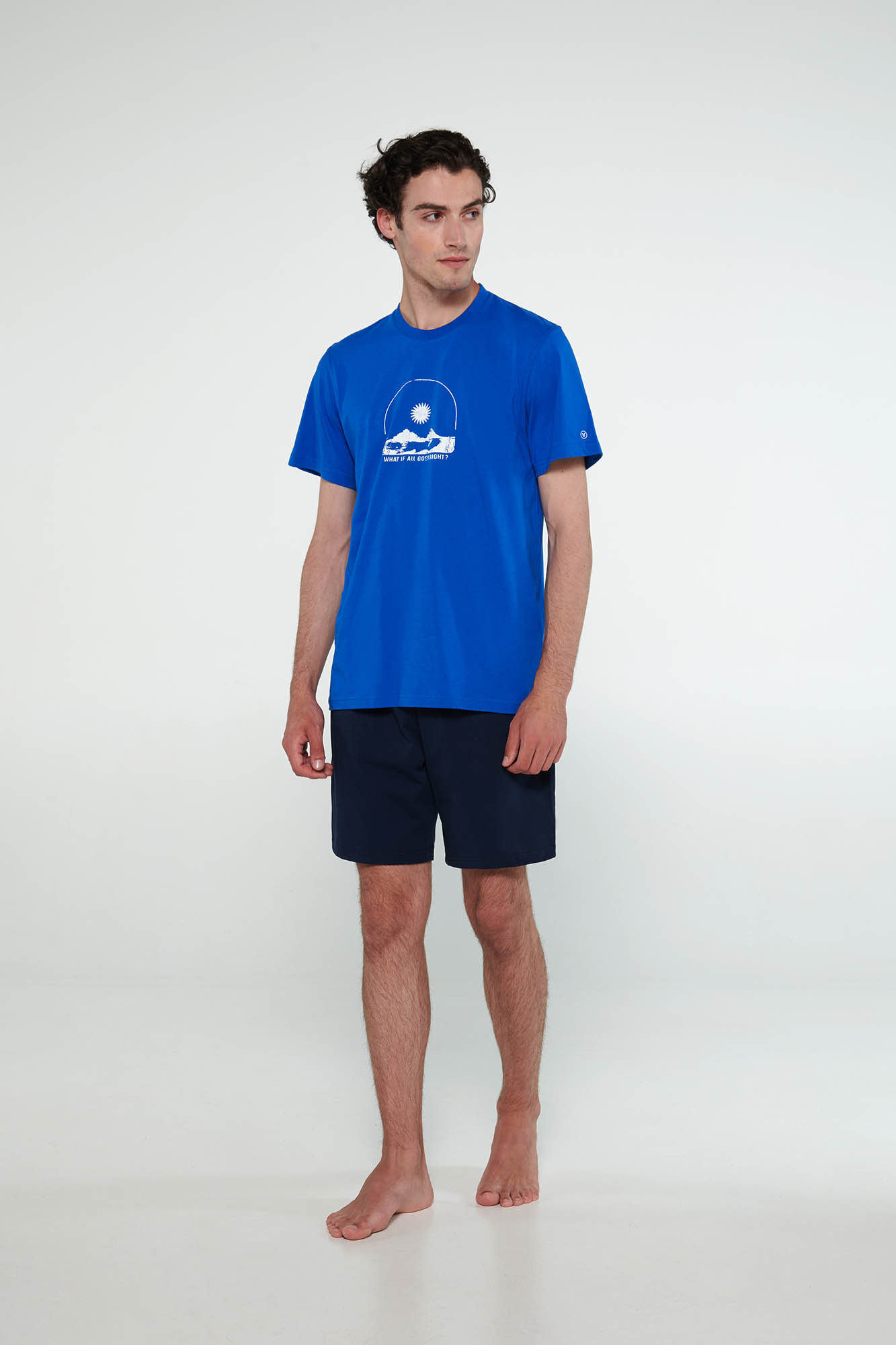 100% bavlna S. JerseyModel: výška 185 cm, veľkosť: medium.Pánske pyžamo s okrúhlym výstrihom a hladkými krátkymi nohavicami. Klasický dizajn, ktorý vás bude tešiť dlhé roky.