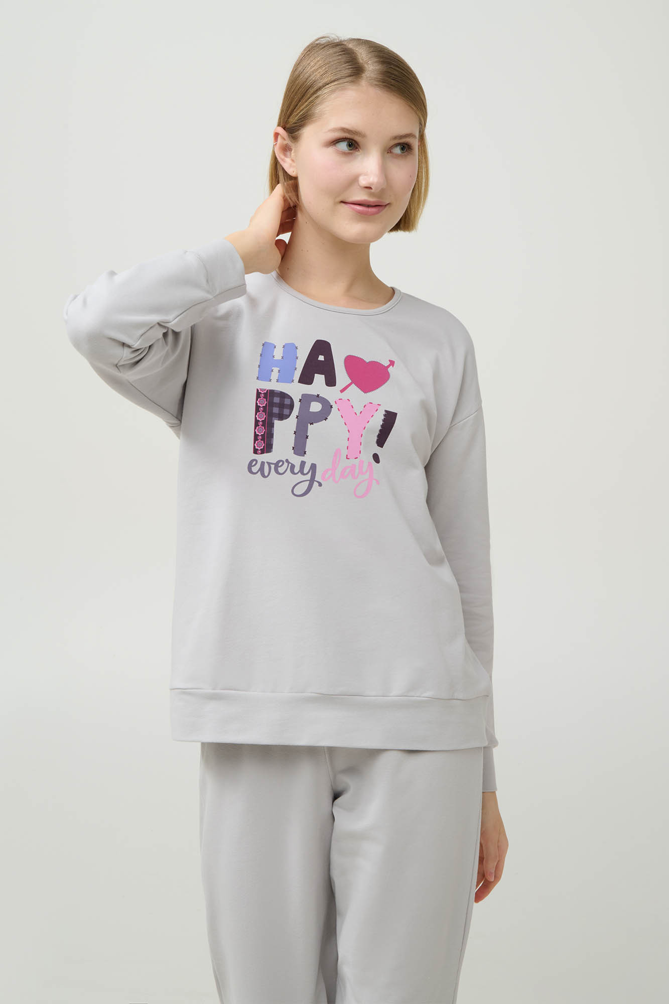 92% bavlnené rúno + 8% elastanDĺžka vrchnej časti: 65 cmModel: výška 175 cm, veľkosť: Small.Zostaňte pohodlná a štýlová počas celej zimy v našom dámskom bavlnenom pyžame. Veselá potlač rozžiari vrchný diel s manžetami, ktorý sa dokonale kombinuje s pohodlnými hladkými nohavicami s manžetami. Široký elastický pás zaručuje dokonalý, pravidelný strih pre maximálne pohodlie. Vyrobené z mäkkej, priedušnej džersejovej zmesi bohatej na bavlnu s elastanom pre jemnú elasticitu. Ideálne na chladné noci alebo relaxáciu doma.