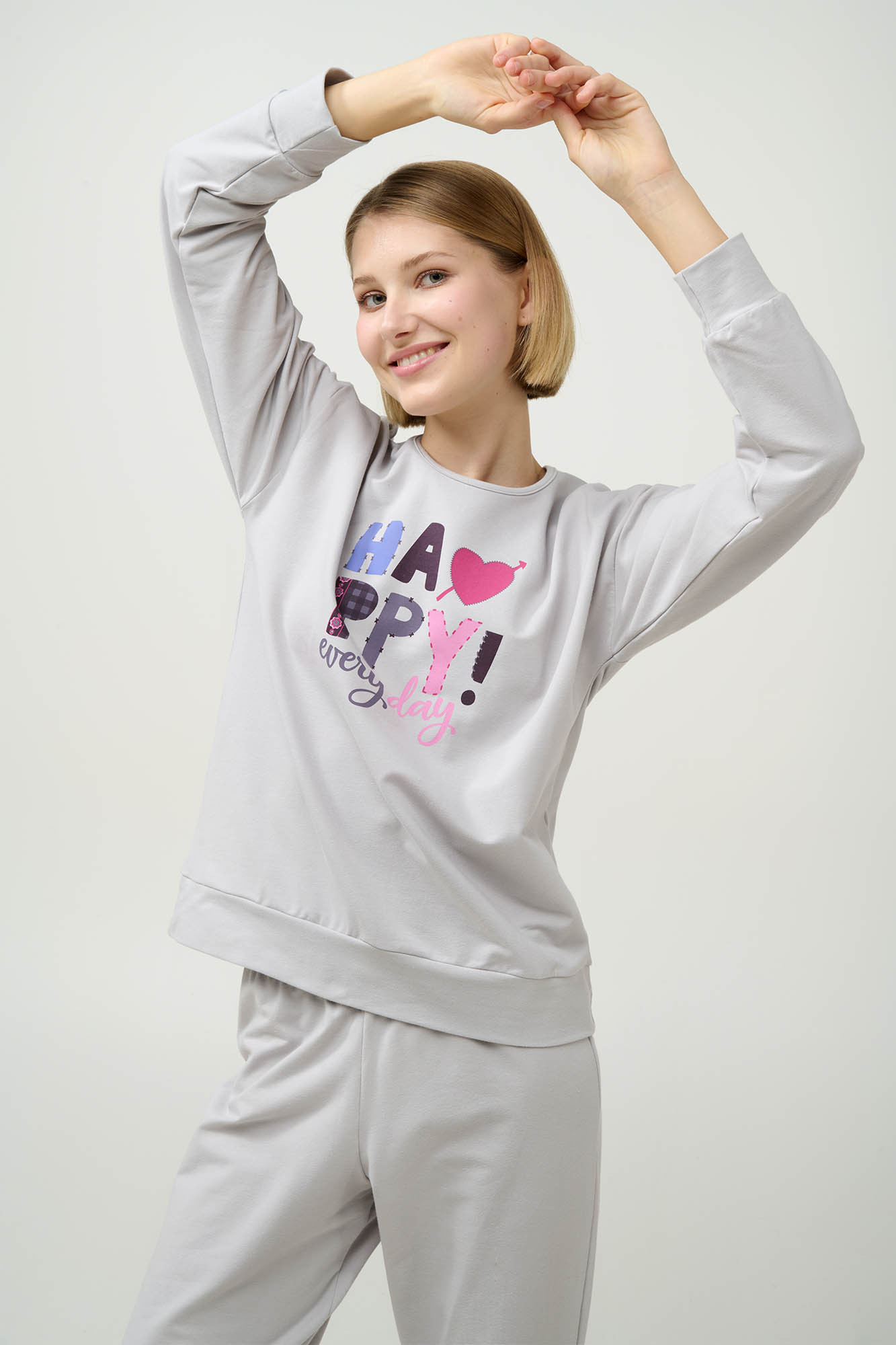 92% bavlnené rúno + 8% elastanDĺžka vrchnej časti: 65 cmModel: výška 175 cm, veľkosť: Small.Zostaňte pohodlná a štýlová počas celej zimy v našom dámskom bavlnenom pyžame. Veselá potlač rozžiari vrchný diel s manžetami, ktorý sa dokonale kombinuje s pohodlnými hladkými nohavicami s manžetami. Široký elastický pás zaručuje dokonalý, pravidelný strih pre maximálne pohodlie. Vyrobené z mäkkej, priedušnej džersejovej zmesi bohatej na bavlnu s elastanom pre jemnú elasticitu. Ideálne na chladné noci alebo relaxáciu doma.