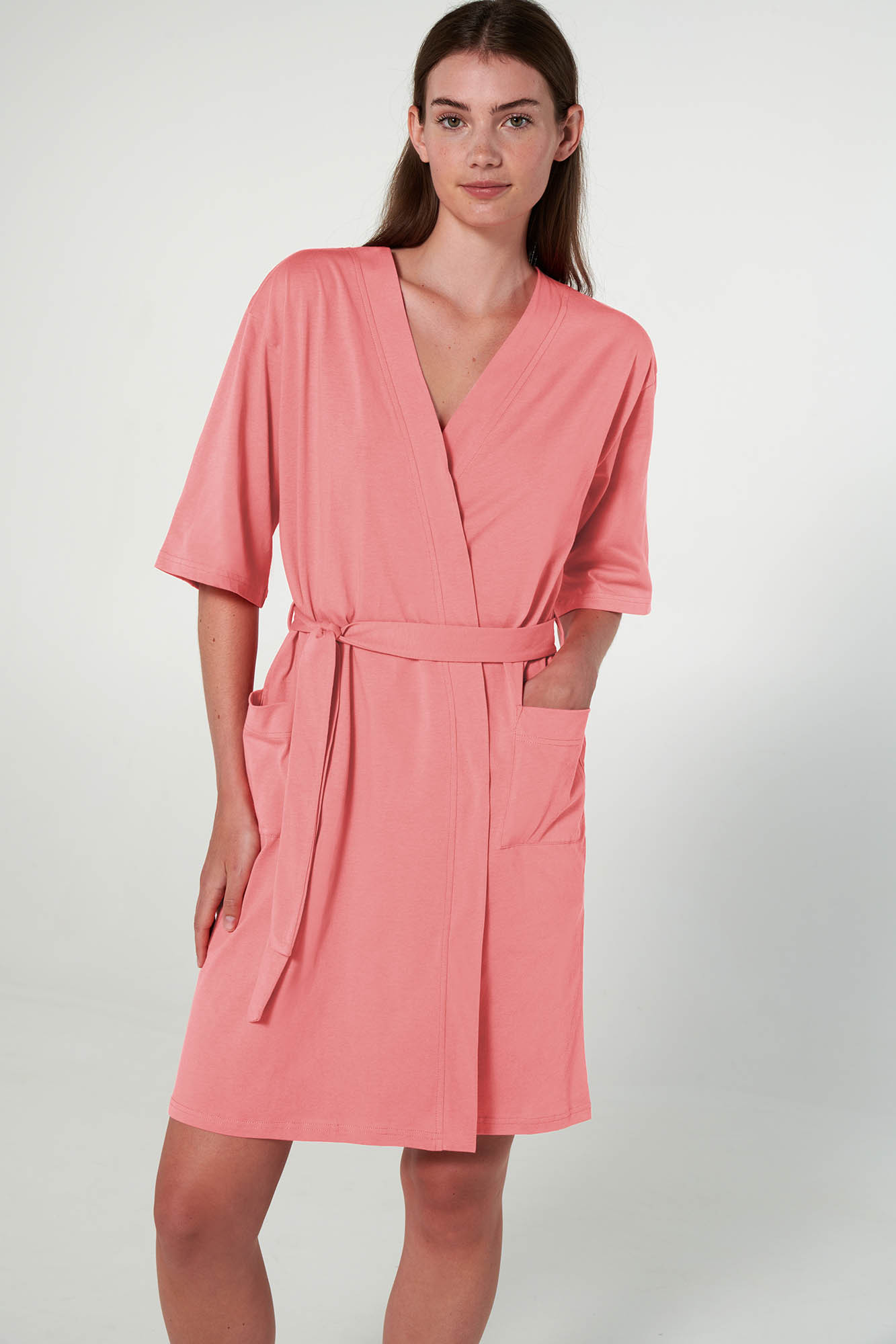 100% bavlna S. JerseyDĺžka: 95 cm.Model: výška 175 cm, veľkosť: small.Dámsky zavinovací župan s krátkymi rukávmi a vreckami. Jednofarebná, mäkká bavlna pre každú chvíľu vášho dňa.