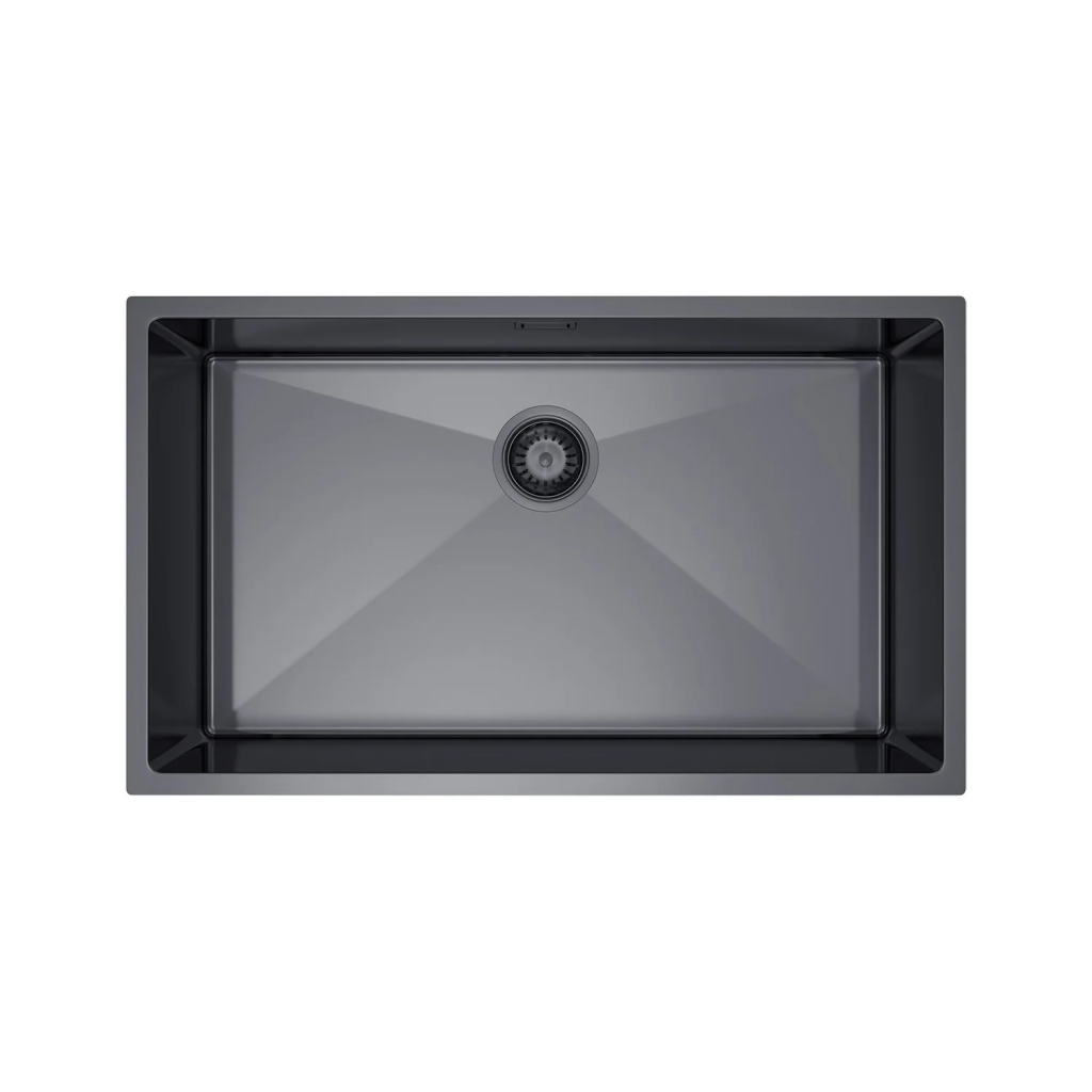 Montáž: Na dosku/pod dosku Materiál: Nerezová oceľ Oceľová povrchová úprava: Kartáčovaný satén Farba: Grafitové PVD Rozmery drezu: 740 mm x 440 mm x 210 mm Rozmery komory: 700 mm x 400 mm Hrúbka kovu komory: 0,8 mm Hrúbka kovu ráfika: 3 mm Prepadový otvor komory: Áno Priemer odtoku: 114 mm (GT)