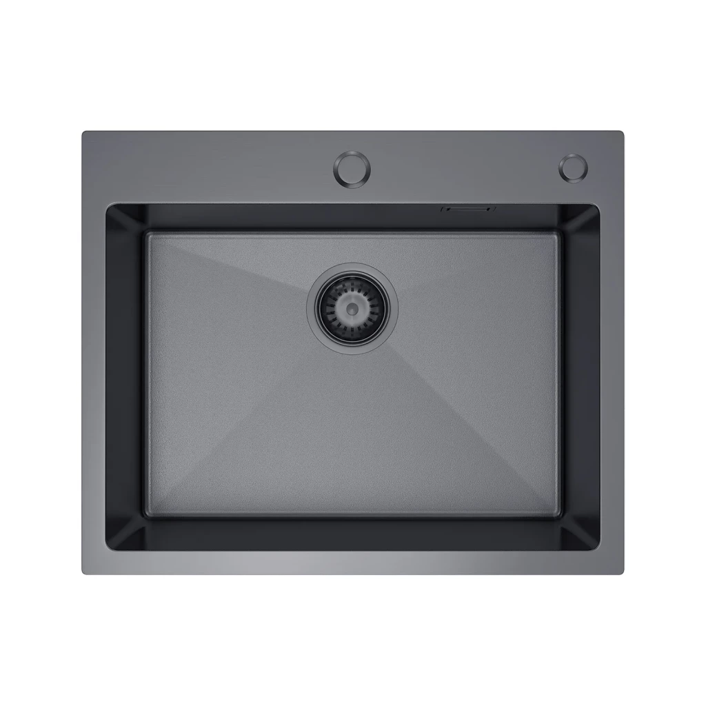 Typ montáže: zapustená do pracovnej dosky Materiál: nerezová oceľ Povrchová úprava: VULKAN Farba: grafit Rozmery drezu: 550 mm x 450 mm x 210 mm Rozmery misy: 500 mm x 350 mm Hrúbka kovu: miska – 0,8 mm, okraj – 3 mm Otvor pre kohútik: áno (35 mm / 28 mm) Prepadový otvor: áno (GT)