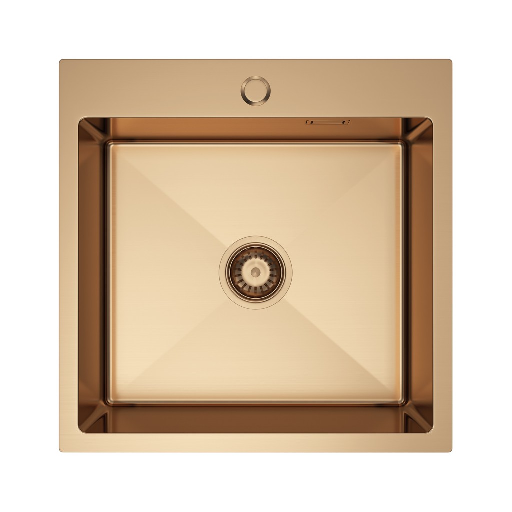 Spôsob montáže: zapustená do pracovnej dosky Materiál: nerezová oceľ Farba: Ružové zlato Oceľový povrch: Kartáčovaný satén Rozmery drezu: 500 mm x 500 mm x 210 mm Rozmer komory: 450 mm x 400 mm Hrúbka kovu komory: 0,8 mm Hrúbka kovu ráfika: 3 mm Otvor pre batériu: Áno 35 mm Prepadový otvor v komore: Áno(GT) Ean: 8596462648673