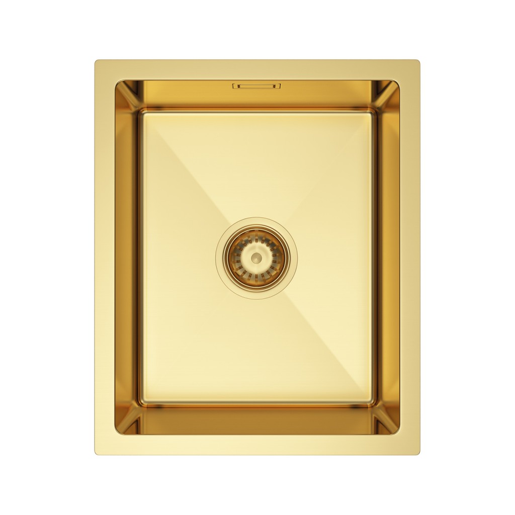 Spôsob montáže: na dosku/pod dosku Materiál: nerezová oceľ Oceľová povrchová úprava: saténovo kartáčovaná Prepadový otvor: áno Hrúbka kovu komory: 0,8 mm Hrúbka kovu ráfika: 3 mm Rozmery drezu: 370 mm x 450 mm x 210 mm Farba: Zlatá (GT)
