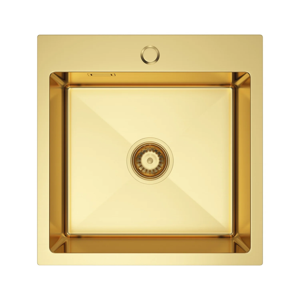 Materiál: Nerezová oceľ Oceľová povrchová úprava: Kartáčovaný satén Farba: Zlatá Rozmery drezu: 460 mm x 450 mm x 210 mm Rozmery misy: 410 mm x 350 mm Hrúbka kovu misky: 0,8 mm Hrúbka kovu ráfika: 3 mm Otvor pre kohútik: Áno, 35 mm Prepadový otvor v mise: Áno Priemer odtoku: 114 mm (GT) Ean: 8596462648536