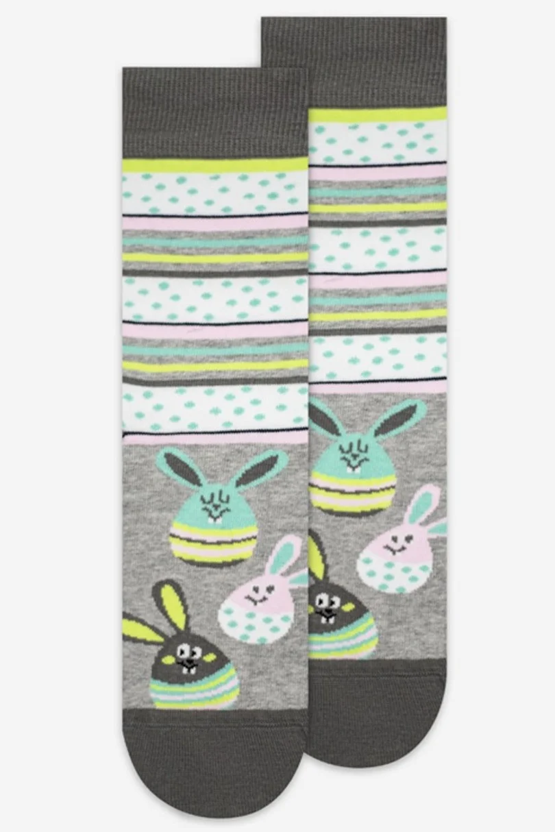 Veselé veľkonočné ponožky od spoločnosti Wola sú ideálnou voľbou pre tých, ktorí majú radi sviatočné akcenty vo svojom každodennom oblečení. Sú vyrobené z vysokokvalitnej bavlny (78 %) s pridanými elastickými vláknami, čo zaručuje pohodlie a dokonalé prispôsobenie sa nohe. Ploché švy minimalizujú riziko odierania a vzorované veľkonočné motívy dodajú šarm každému oblečeniu. Sú ideálnym doplnkom na rodinné oslavy a ako darček pre blízkych!.