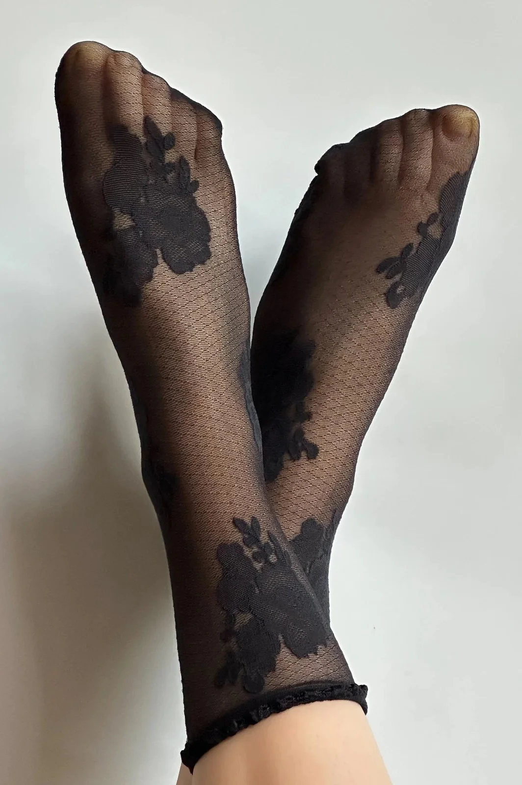 Tenké vzorované dámske ponožky - ozdobný lem - univerzálna veľkosť Zloženie: 90% polyamid, 10% elastan