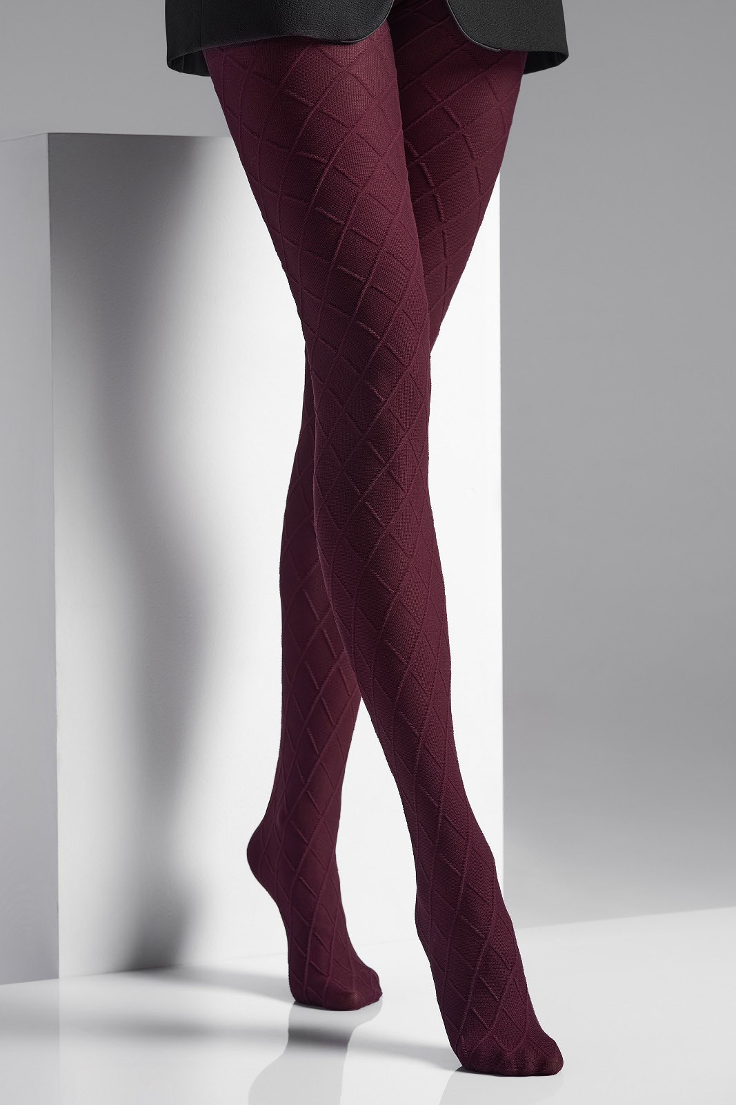 Nepriehľadné pančuchy z mikrovlákna - vypuklý geometrický vzor -malý klin - pohodlný, neťahavý pás Zloženie: 95 % polyamid, 5 % elastan