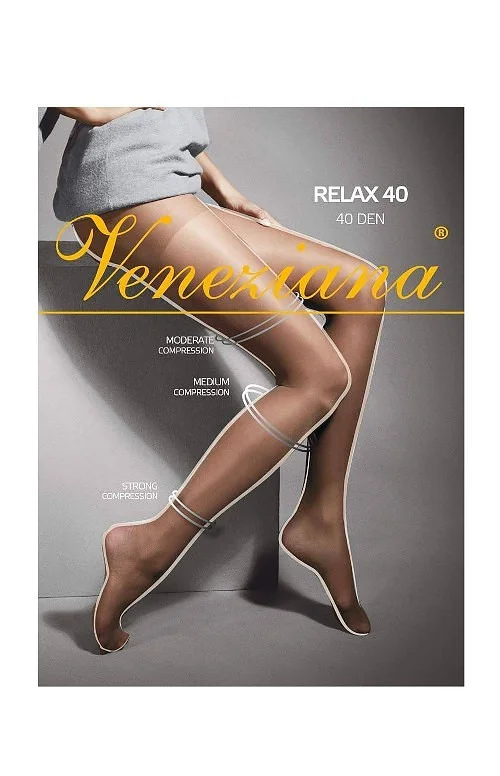 Relaxačné pančuchy - vyrobené z lycry, 40 denier - postupná kompresia, ktorá uľahčuje správny krvný obeh a zabraňuje únave a opuchom - zosilnená špička - pohodlné pančuchy so strednou kompresiou Zloženie: 83 % polyamid, 15 % elastan, 2 % bavlna