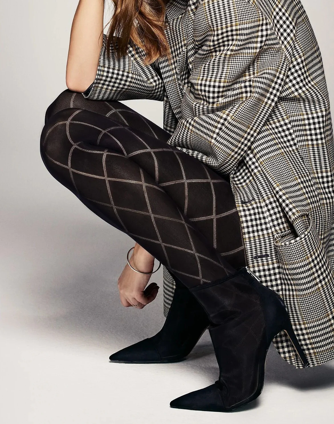 Dámske pančuchové nohavice 60 den - mäkké, elastické mikrovlákno - geometrický vzor s veľkými diamantmi - malý bavlnený klin - pohodlný, nekrčivý pás Zloženie: 85 % polyamid, 12 % elastan, 3 % bavlna