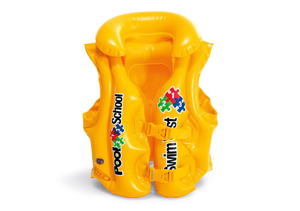 Žltá nafukovacia vesta uľahčí deťom výučbu plávania. Dodatočnú bezpečnosť zabezpečujú 3 vzduchové komory vrátane nafukovacieho goliera a 0,25 mm hrubý materiál. Veľkosť 50 x 47 cm. Nosnosť 18 - 30 kg Vesta sa dá pripevniť k telu pomocou dvoch nastaviteľných rýchloupínacích praciek. Odporúčaný vek: od 3 rokov