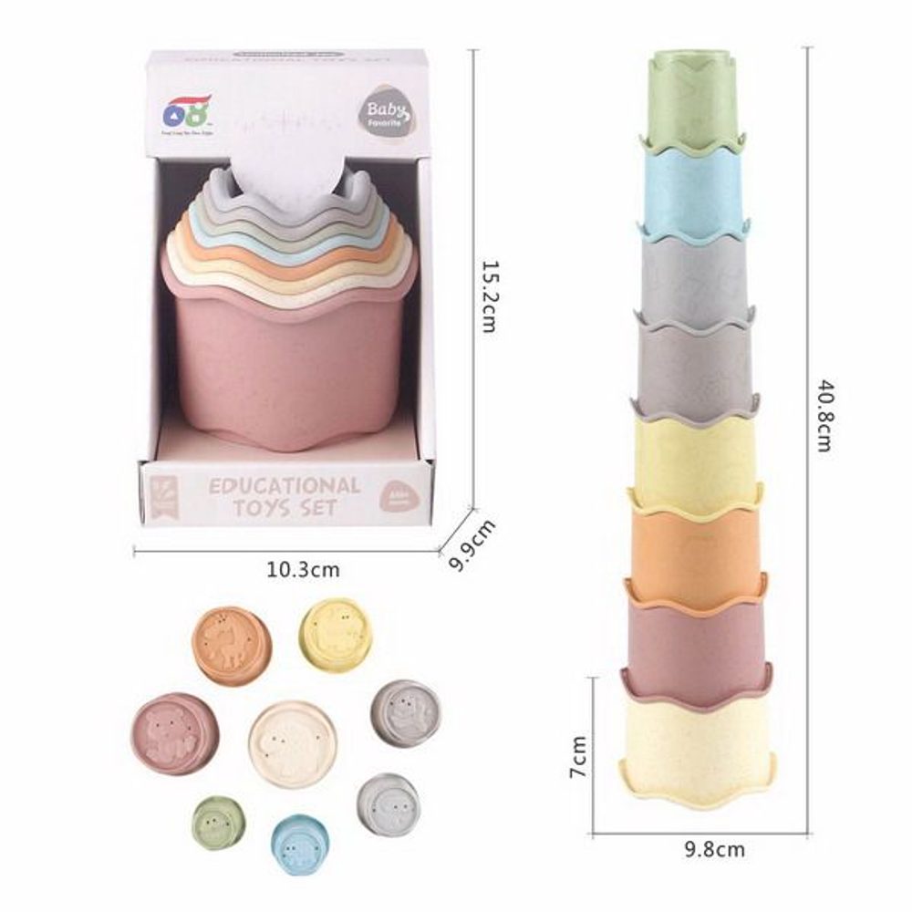 Veža na stohovanie pohárov, vlnky. Balenie obsahuje 8 ks. Rozmery postavenej veže 9,8x9,8x40,8 cm.