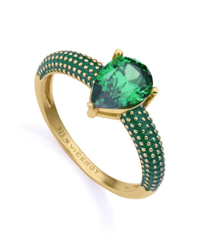 Viceroy Prekrásny pozlátený prsteň so zeleným zirkónom 15122A0 57 mm