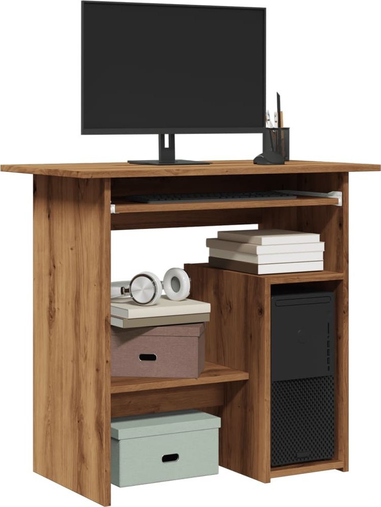 VidaXL Biurko z podświetleniem LED, dub sonoma, 140x55x91 cm